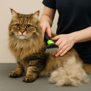 El deslanado felino es un tratamiento pensado para gatos de pelo medio y largo que ayuda a eliminar el subpelo y el pelo muerto de forma segura y sin estrés. Es especialmente útil en épocas de muda o en razas como Maine Coon, Persa, Bosque de Noruega o Ragdoll. Este servicio no solo reduce la caída de pelo en casa, sino que también disminuye la formación de bolas de pelo que el gato ingiere al acicalarse. Además, previene nudos, favorece la oxigenación de la piel y mejora la textura del pelaje. En Spaperros, aplicamos técnicas delicadas y adaptadas al comportamiento felino, en un entorno tranquilo y controlado para garantizar una experiencia libre de estrés y respetuosa con su naturaleza.