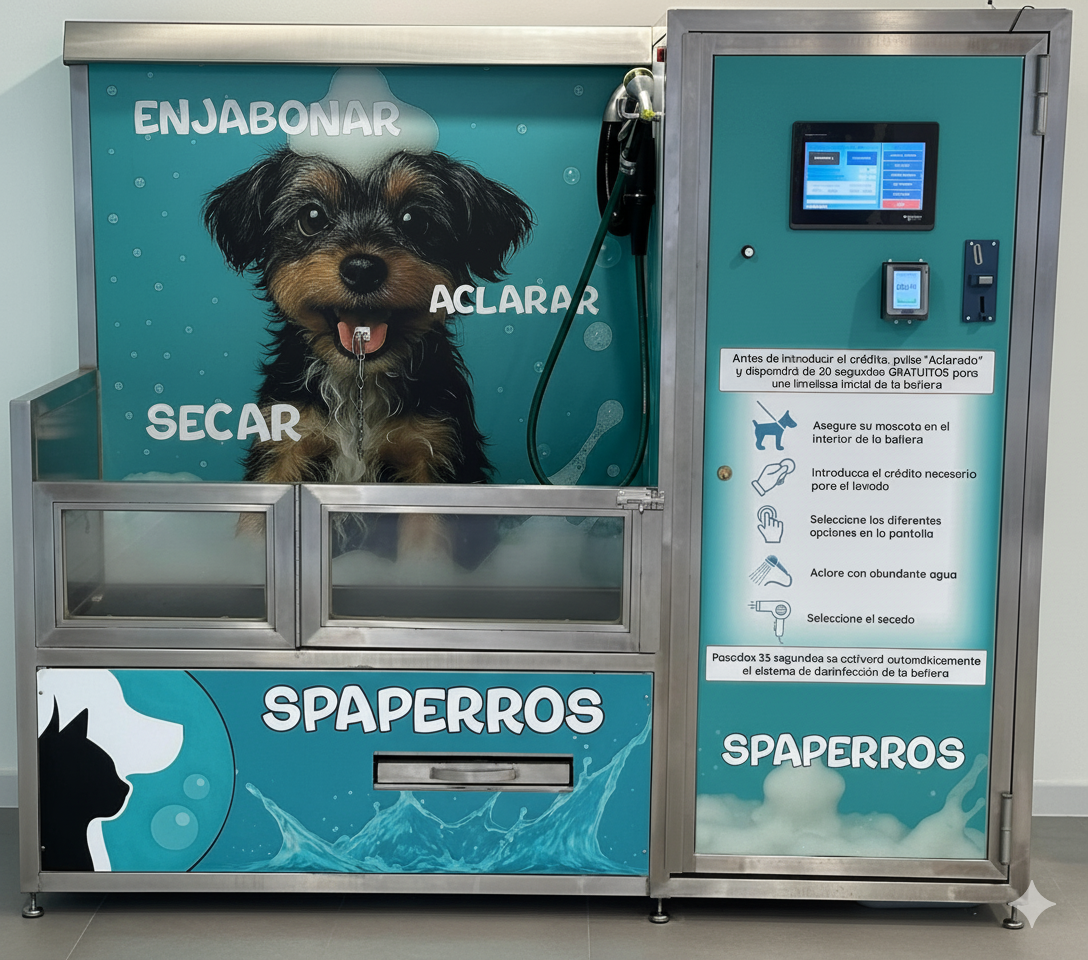 Disfruta de una experiencia rápida y segura para tu peludo. Nuestra máquina de autolavado ofrece agua templada, champú neutro de uso profesional y champú desparasitario, aclarado eficaz y secador regulable. Con suelo antideslizante, cabina amplia y limpieza entre usos, podrás bañar a tu perro sin salpicaduras en casa ni dolores de espalda. Sin reservas: llega, lava, seca… ¡y listo!